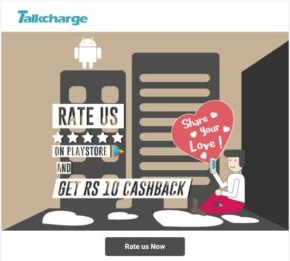 - Talkcharge: Fix Rs.10 Cashback on Recharge of Rs.10